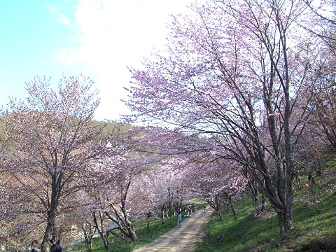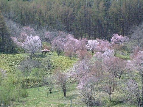 北見市の自然休養村キャンプ場は、昨日北見フラワーパラダイスの職員さんが教えてくれた場所だ。昨日の地元新聞に載ったという。自然休養村全体で60本ほどの桜が植えられている。キャンプ場を望遠で撮ったが、こんなに桜いっぱいの中で寝ることができたらとても幸せだろう。
