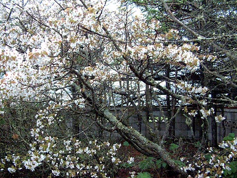 無住の民家の庭で、人知れず満開を迎えたチシマザクラ。