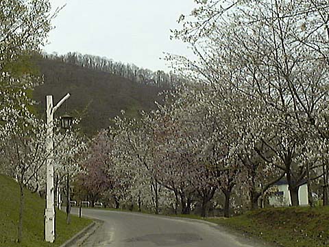 東明公園に隣接する東明神社の山桜。 1998.5.1--北海道美唄市東明 ↑ click photo(83K) |