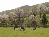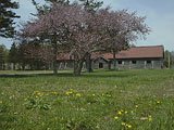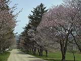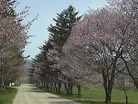 日高種畜牧場の桜並木は、日高山脈に向かって約3Km続いている。付近にはJRAの訓練施設や社宅、民間の牧場などがあり、時々馬を乗せたトラックが桜並木の間を通っていく。