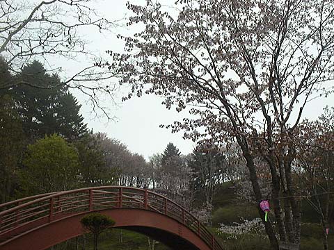 ここには、オオヤマザクラ(エゾヤマザクラ)、カスミザクラ、チシマザクラなど約1000本が植えられているという。私が見たところ、チシマザクラは満開、オオヤマザクラは8分咲きといったところだ。