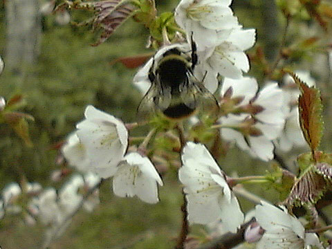 熊蜂が、短い花期を惜しむかのように忙しく飛び回っていた。 1998.5.29--北海道東川町旭岳温泉 ↑ click photo(50K) |