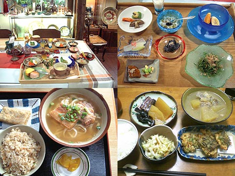 下左はうまいそばと雑炊と田いもの天ぷら、