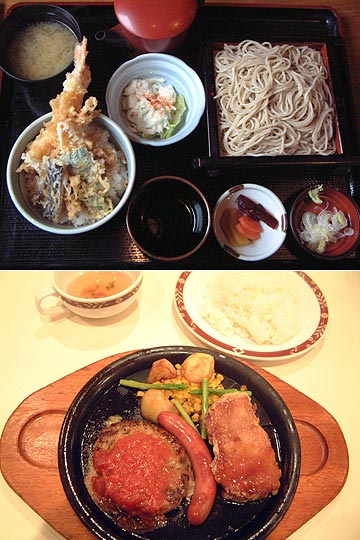 - 昼:踊り子温泉会館のそばにあるそば屋「時盛」で、ミニ丼・ミニもりセット(ミニ丼は天丼で)。そばはコシが心地よく、つゆも適度な濃さでうまい。また、生わさびが香り高くおいしい。さすがにわさび産地だけのことはある。
