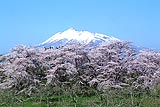 2. お岩木山と桜。 下に見えるのはりんご畑。 2006.5.9-青森県板柳町 岩木川河川公園(50K) |