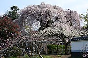 慈雲寺の枝垂桜(イトザクラ)を見るのは3度目だ。以前よりもピンク色がやや薄く感じる。ご住職と話す機会を得たのだが、2日前頃は色がやや濃かったそうだ。散り始めて色が薄くなったらしい。今年は開花してから寒い日が続いたのと、風の強い日が少なかったので、花が長く持っているとの事。昨年あったウソ(野鳥)の被害は今年はなく、花も多いという。年々歳々、桜は違うものだなあと改めて感じる。