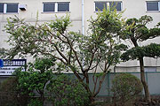 | 1. 木の全体。 咲いているところは分からない。 他の桜に比べて少し葉が少ないのが特徴。 2010.8.8-埼玉県さいたま市北区日進町 (いずれも、許可を得て撮影) |