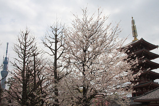2. 桜と五重塔と 東京スカイツリーのある風景。 2011.4.10-東京都台東区 浅草寺 |