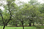 桜園地の、入り口から遠い方の十月桜。 やはり他の桜同様、葉が茂り、花が咲いている印象はない。 -東京都新宿区 新宿御苑 |