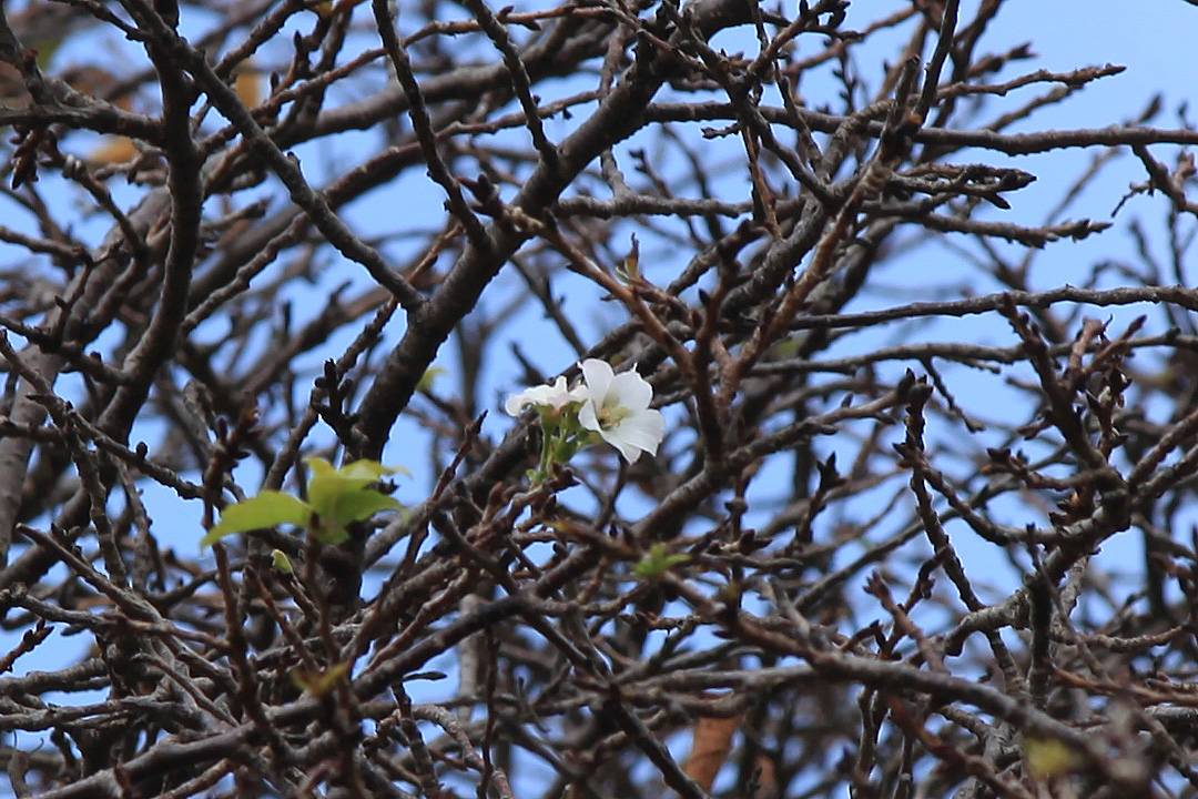 先々週も先週も水戸では開花中の花が見つからなかった。近所の二季咲桜(四季桜)も開花していない。去年11月に見つけた
