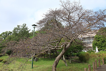 十月桜の全景。他の種類の桜よりは早めに葉を落とし始めている。