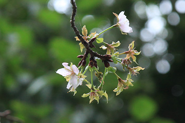 の後ろに少しだけ桜が咲いているのを見つけた。二季咲桜(四季桜)だった。こんなところに、と思う場所だ。