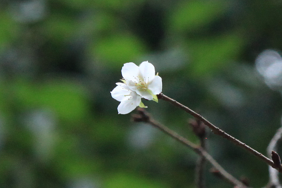 四季桜はかなり切られていて、花は左に延びた小枝に咲く。