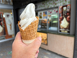 帰路の笠間パーキングエリアで、栗ソフトクリーム。栗のかおりがいい感じ。ベースのソフトクリームじたいもミルキーな印象でおいしかった。 |