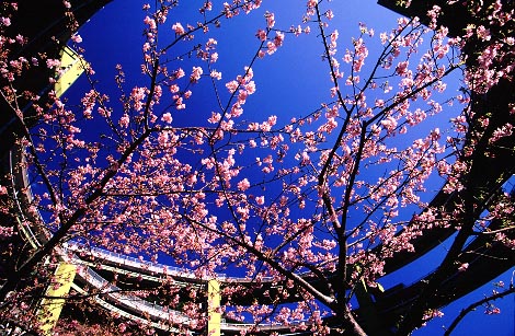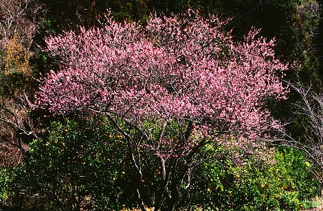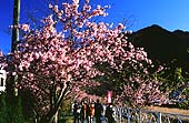 事前に聞いていた通り、ここの桜はほぼ満開だ。桜にしてはやや濃い目のピンク色をした花が、一足早く春の喜びを私たちに運んでくれているかのようだ。