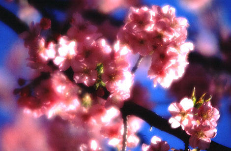 先日熱海桜を見たときもそうだったが、今日も空の色が濃くて、空を背景にして桜を見ると花の色が一層映える。