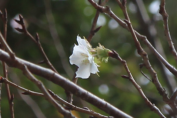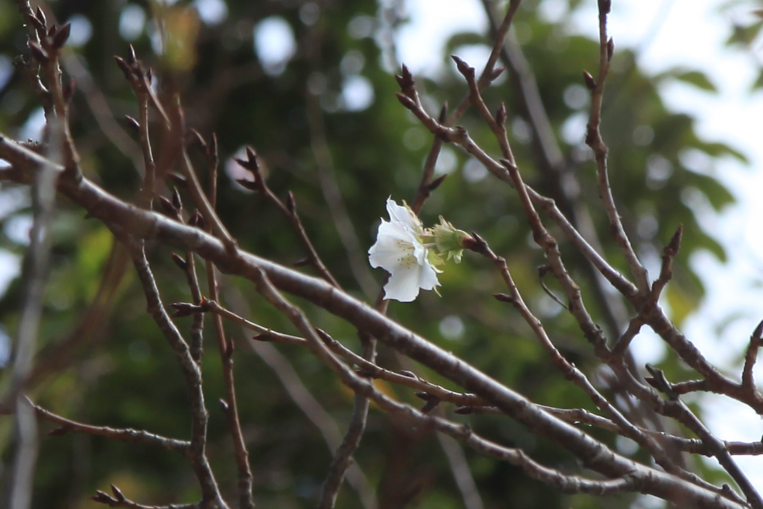 ここでは6本ほどの秋咲き性のヤマザクラを見つけた。今日はそのうち2本で、計10輪ほどの花を見た。 | |